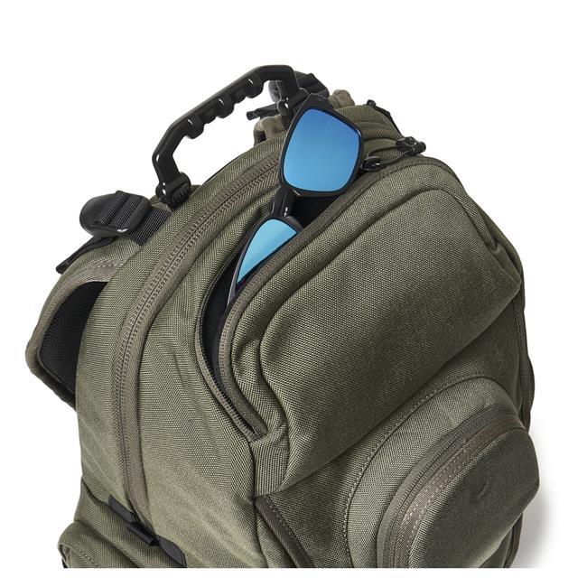 Tough Cordura fabric and a durable, high-density rubberized bottom panel offer protection from the elements, while five exterior zipper pockets and Velcro® strapping on the sides help keep gear close at hand. A roomy interior with open panel pockets, an ergonomic handgrip, and padded, adjustable shoulder straps combine to make this backpack both comfortable and highly functional.
